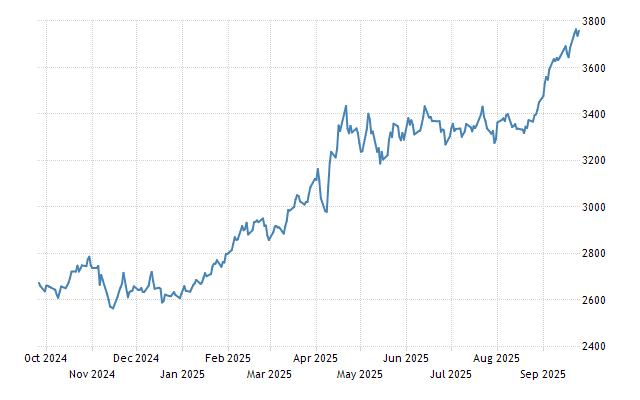 As of September 2025, the price hovers around $3,770 per ounce, but total retail prices depend on dealer premiums, often adding 2-5% above spot.